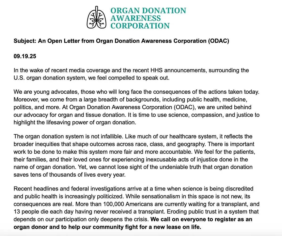 We are a passionate community of undergraduate students who have united with a common purpose: advocating for organ donation. Our journey began when a pair of forward-thinking individuals at NYU decided to challenge the idea that student impact is limited. What started as a spark of defiance has ignited into a national movement, encompassing students from various universities across the country.